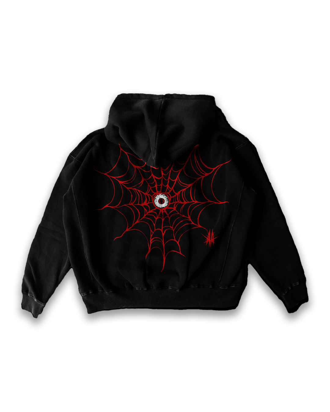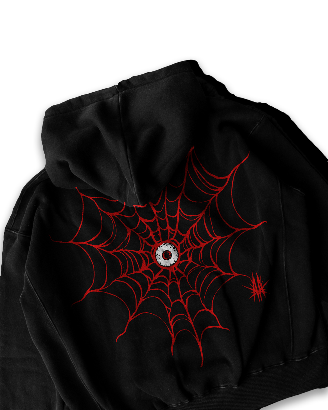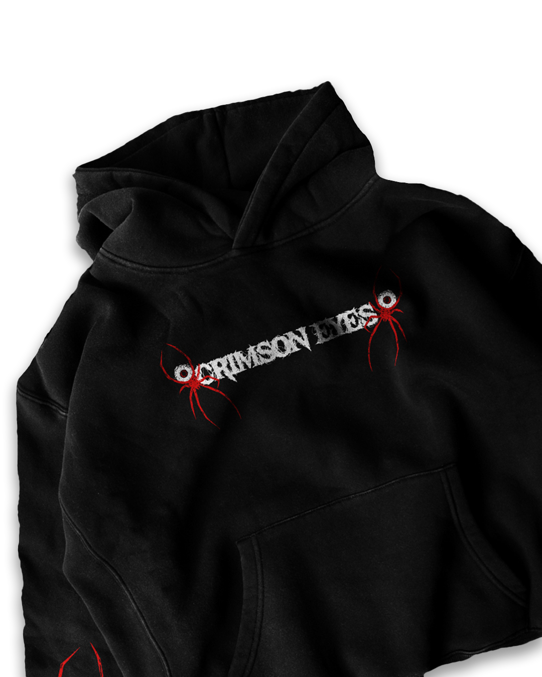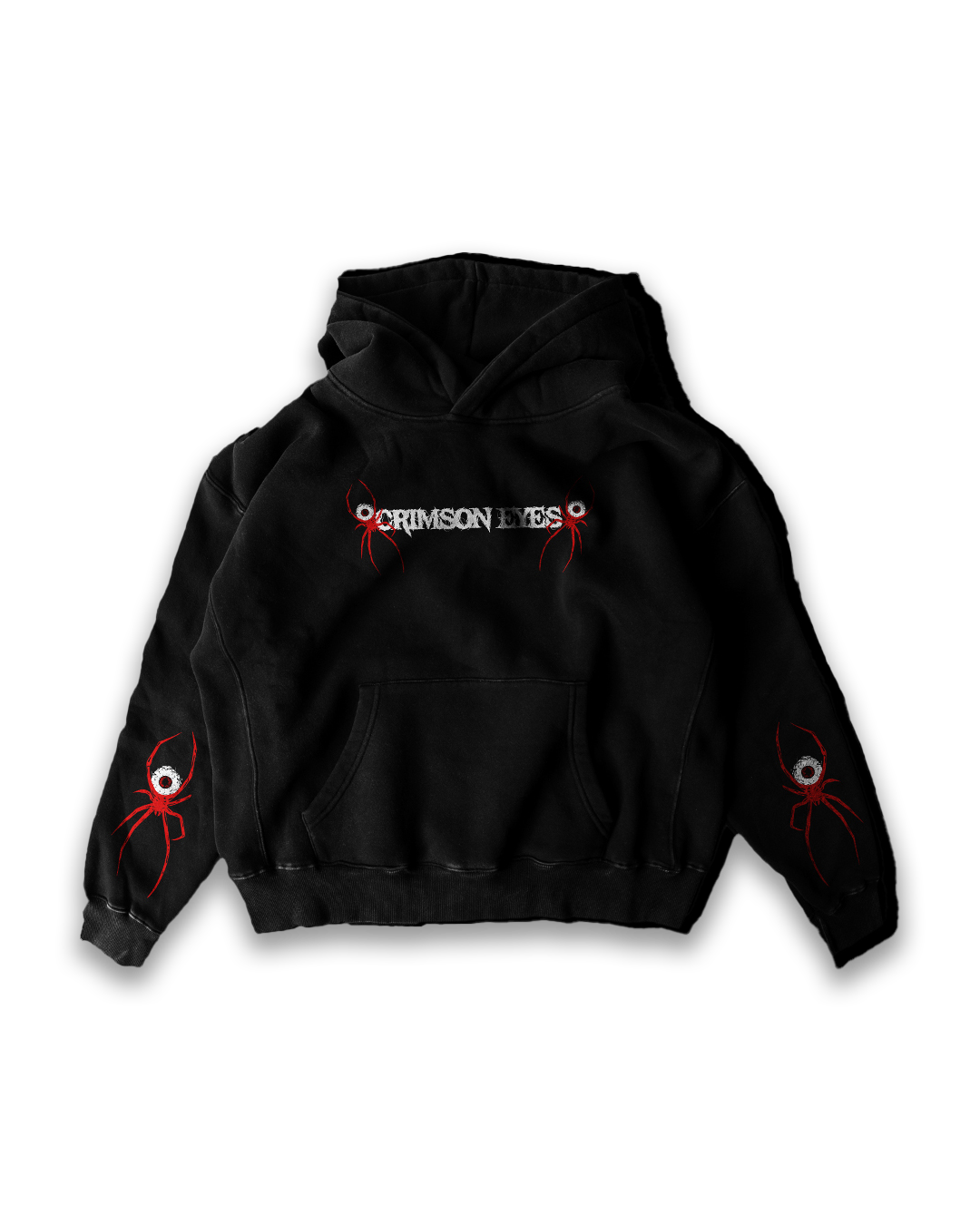 Made from premium 350 GSM super-combed cotton fleece, the Crimson Eyes hoodie offers both comfort and style. This oversized hoodie showcases a striking spider-web design with a central crimson eye graphic on the back, paired with bold red spider details on the sleeves. The front features the “Crimson Eyes” text graphic, making it a statement piece for any wardrobe. Designed for warmth and durability, this hoodie is perfect for those who want to stand out.