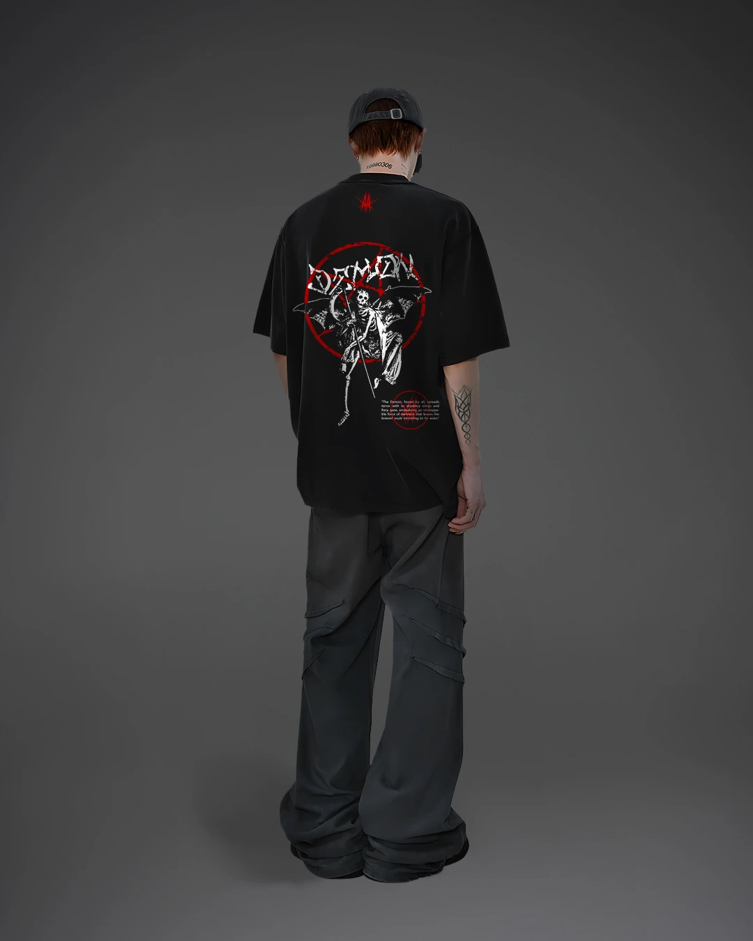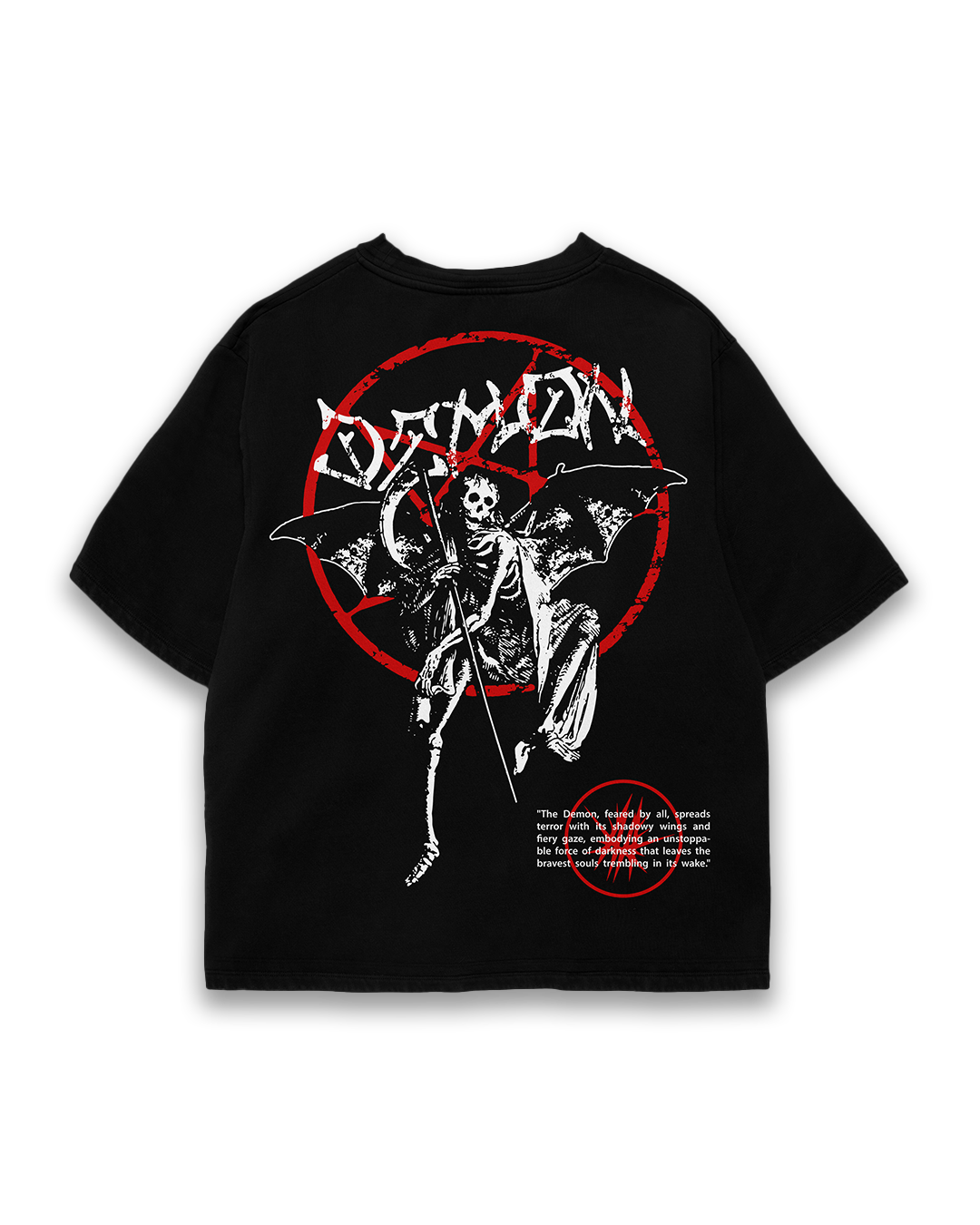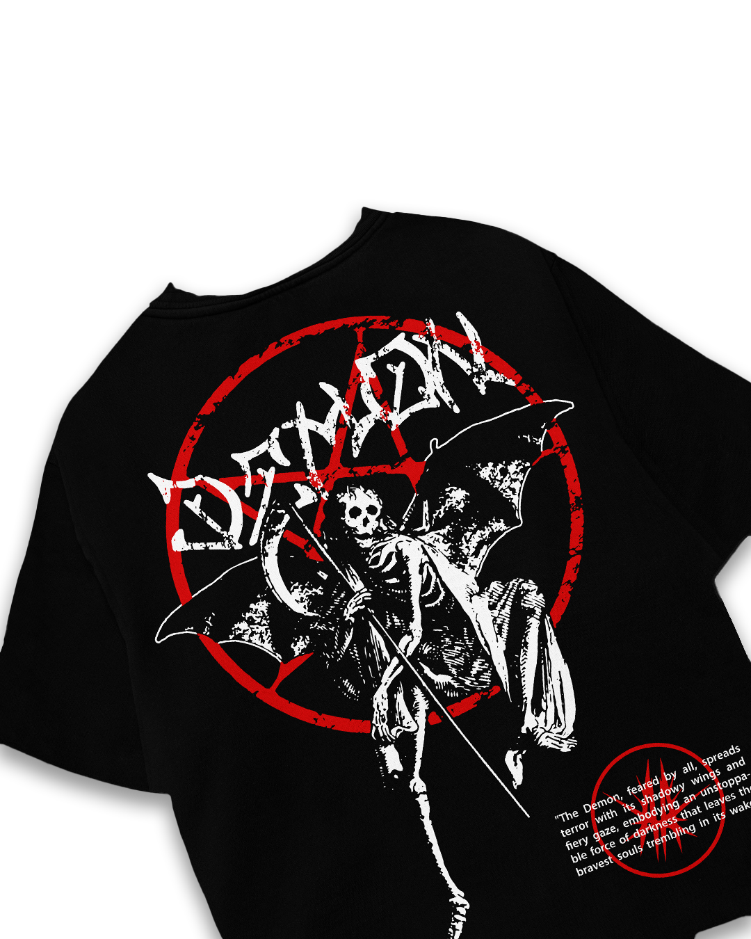 Embrace the dark with this heavy, bold design on a 240 GSM terry cotton black T-shirt. Built in an oversized fit, the “Demon Reaper” graphic dominates the back, bringing a powerful, intense vibe. Crafted for comfort and style, this piece is ideal for anyone looking to stand out with an unapologetically heavy aesthetic.