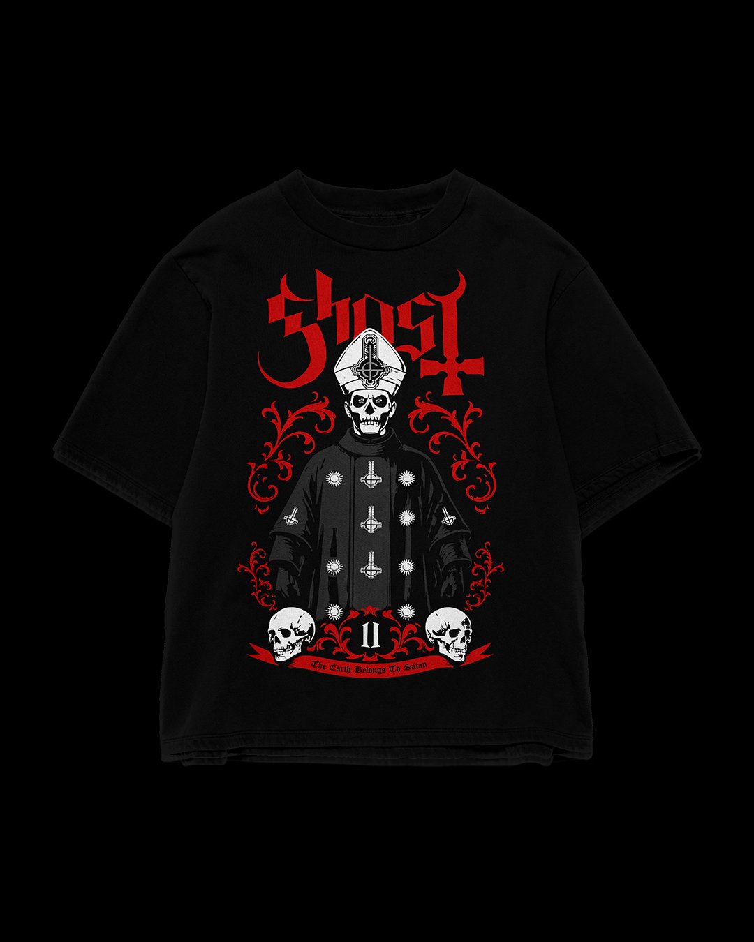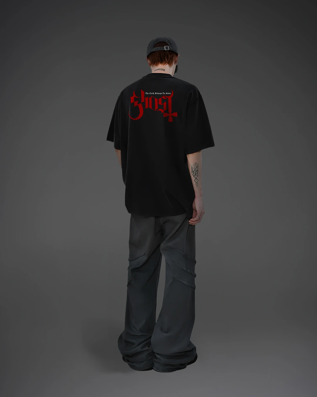 Haunting but holy. The Ghost Tee drips with gothic drama, featuring a high-detail print of Papa Emeritus in full regalia — candlelit shadows, sacred symbols, and theatrical decay. The front delivers cathedral-grade energy, while the back seals it with a blood-red Ghost insignia that feels like a sermon on rebellion. Dark, divine, and unapologetically loud.