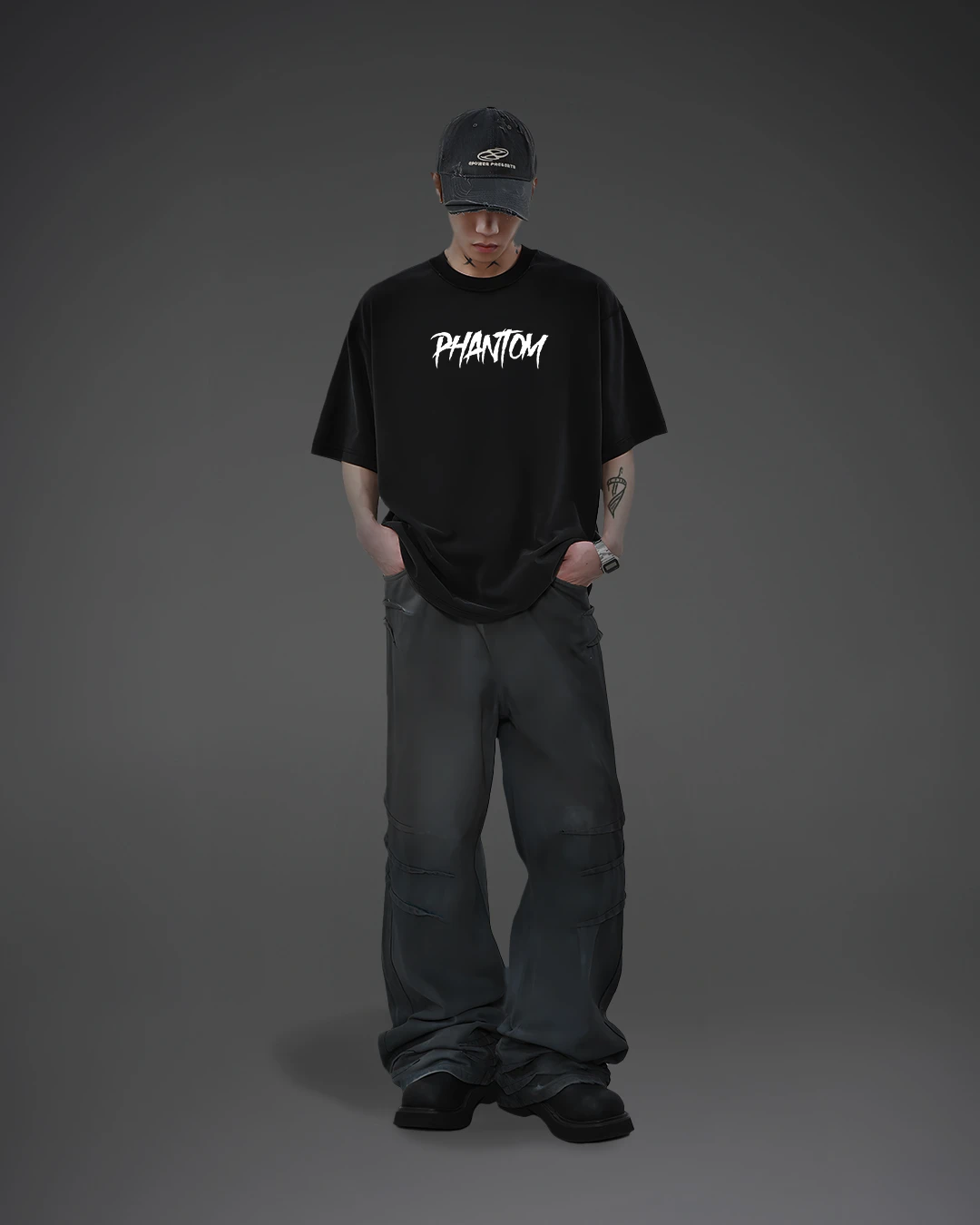 Step into the shadows with the “Phantom” T-shirt, crafted from 240 GSM terry cotton in a deep black hue and oversized fit. This design delivers a bold, heavy aesthetic, perfect for those who crave a dark, intense vibe. Made for both comfort and impact, the “Phantom” T-shirt is a staple piece for anyone looking to make a powerful statement in streetwear.