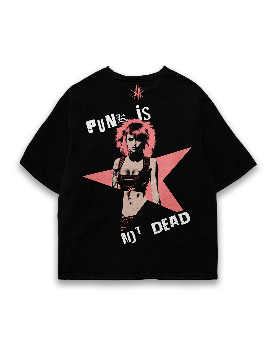 Revive the rebellious spirit with our Oversized 220 GSM Black T-shirt, featuring “Punk is not dead” in a grunge font on the front. Turn heads with a fierce punk rockstar wielding a guitar against a star backdrop. Complete the statement with the same rebellious message on the back, encapsulating the unapologetic essence of punk.