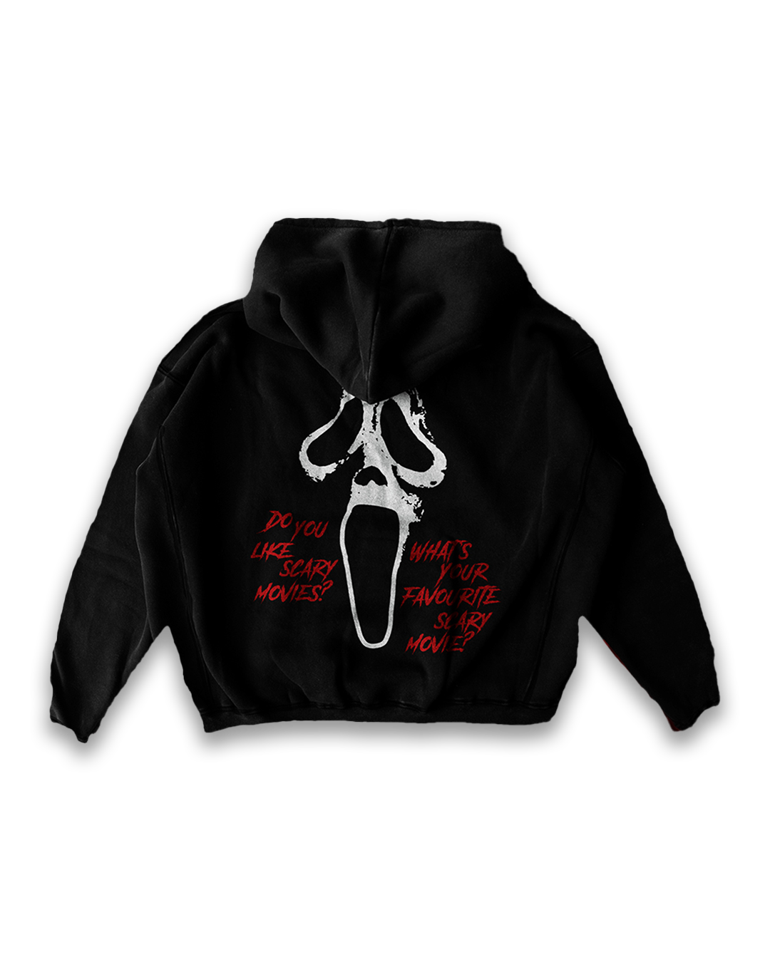 Get ready for chills with the SCREAM HOODIE, inspired by the iconic slasher Mr. Ghostface. Made from 350 GSM super-combed cotton fleece, this oversized hoodie is your go-to for Halloween and beyond. Soft, heavy, and perfect for those eerie nightsāwear it and channel the fear- Inspiration: Mr.Ghostface from the “scream” series