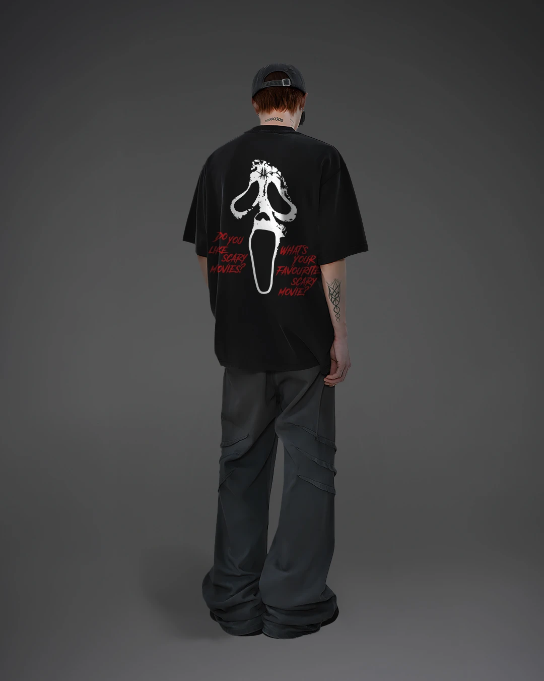 Get ready for chills with the SCREAM Oversized T-shirt, inspired by the iconic slasher Mr. Ghostface. Made from 240 GSM Terry cotton, this oversized T-shirt is your go-to for Halloween and beyond. Soft, heavy, and perfect for those eerie nights—wear it and channel the fear.