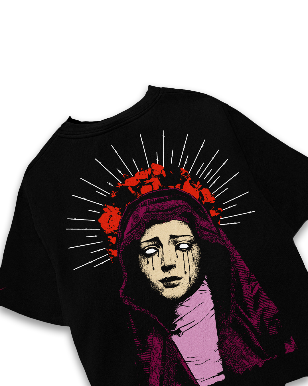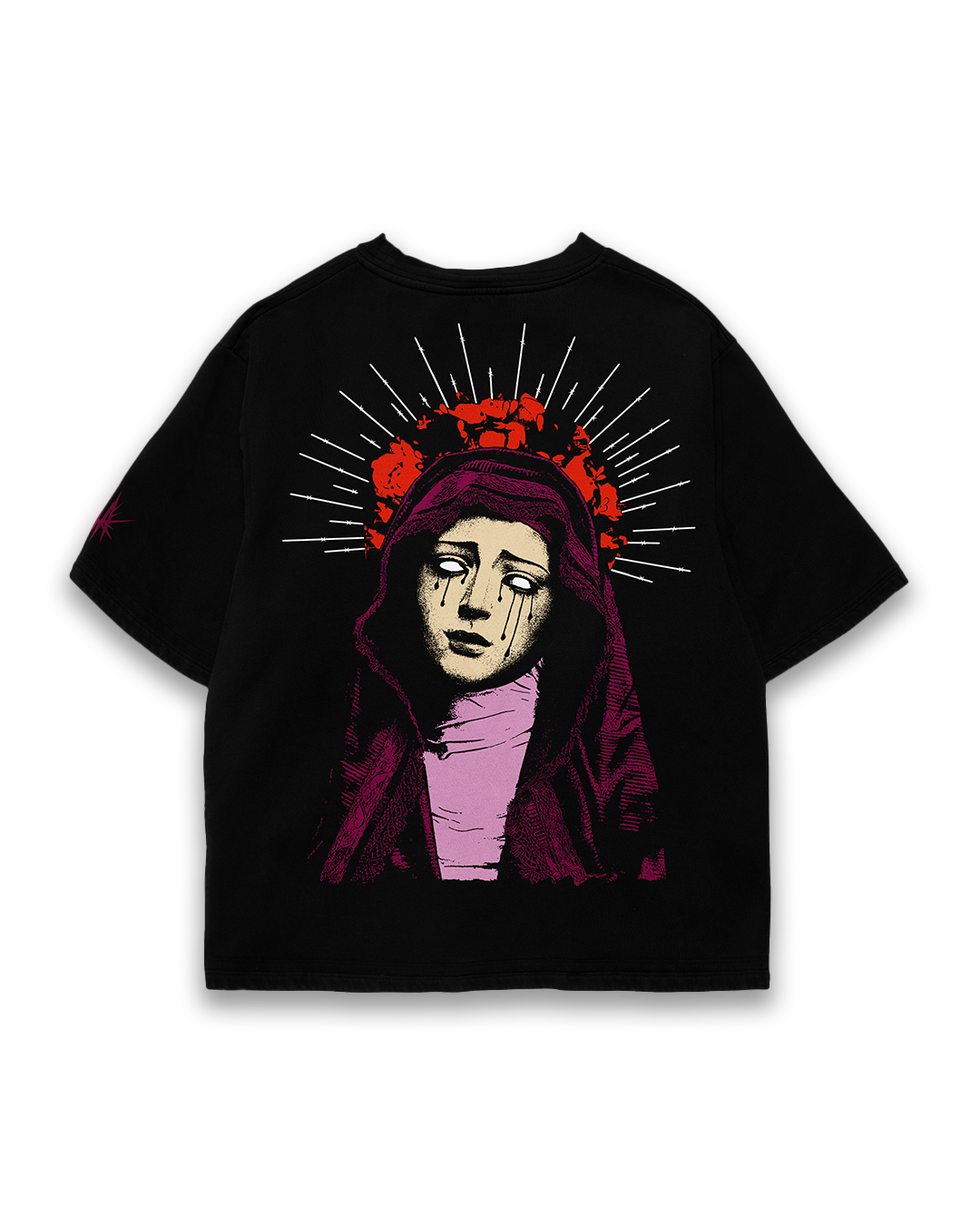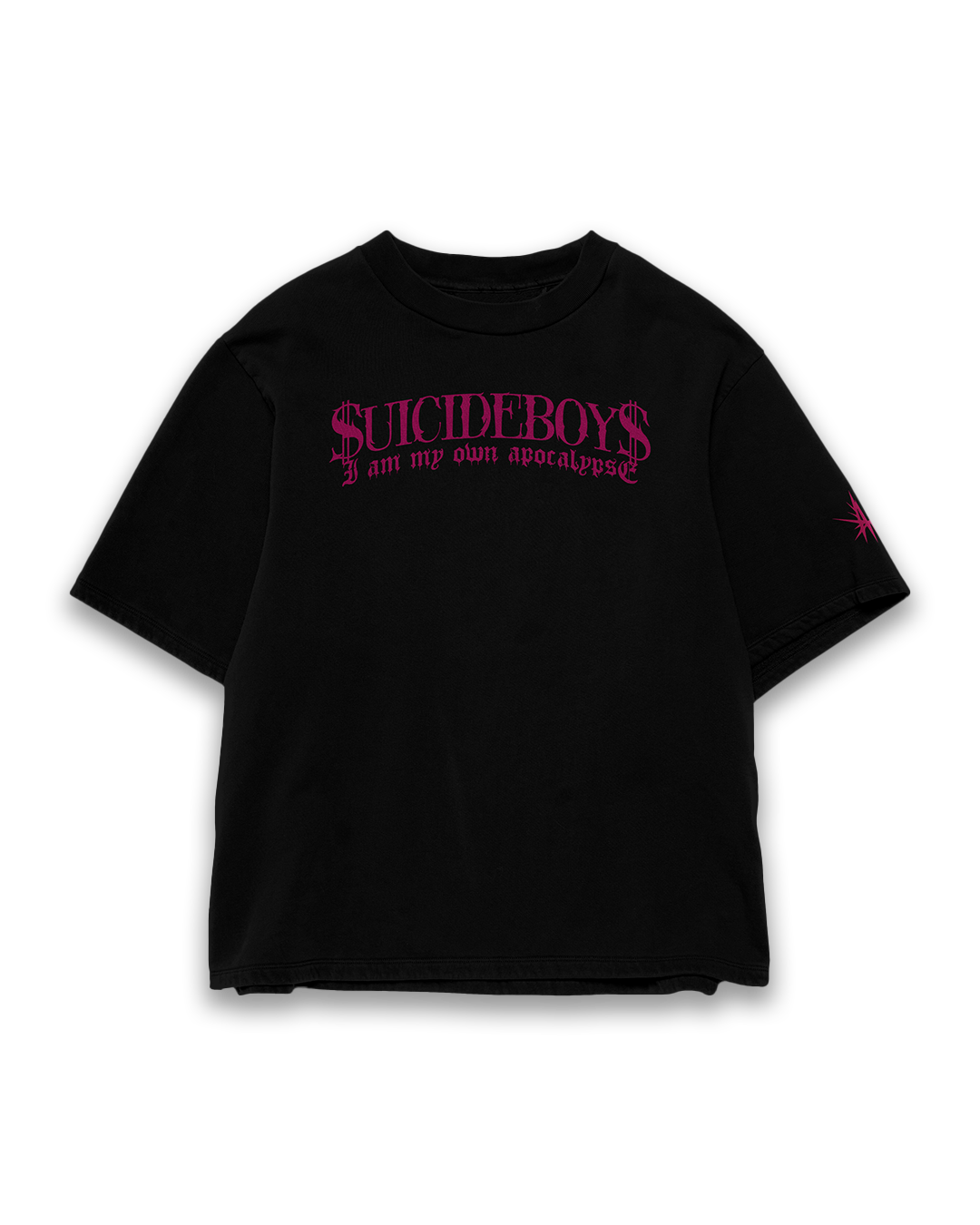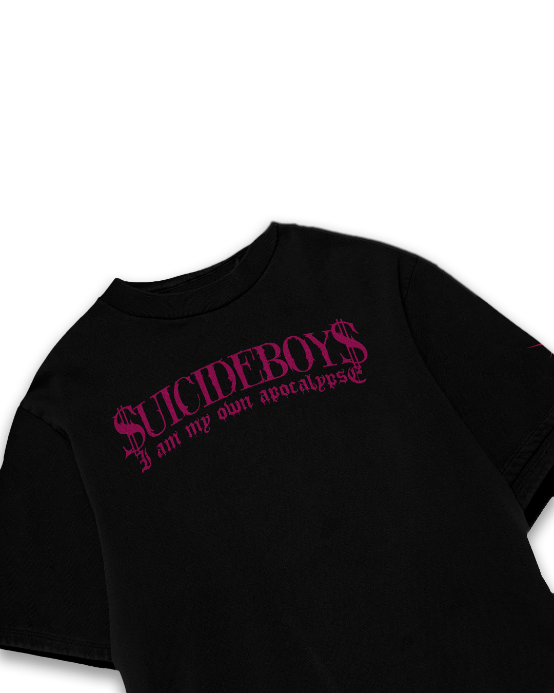 Dark, raw, and unapologetic, the Suicideboys Oversized T-Shirt captures the essence of underground hip-hop and alternative streetwear. The front design features the “$UICIDEBOY$” logo with the phrase “I Am My Own Apocalypse” in a gothic-style font, while the back print showcases a striking, melancholic artwork of a crying Virgin Mary with a shattered crown of roses.
