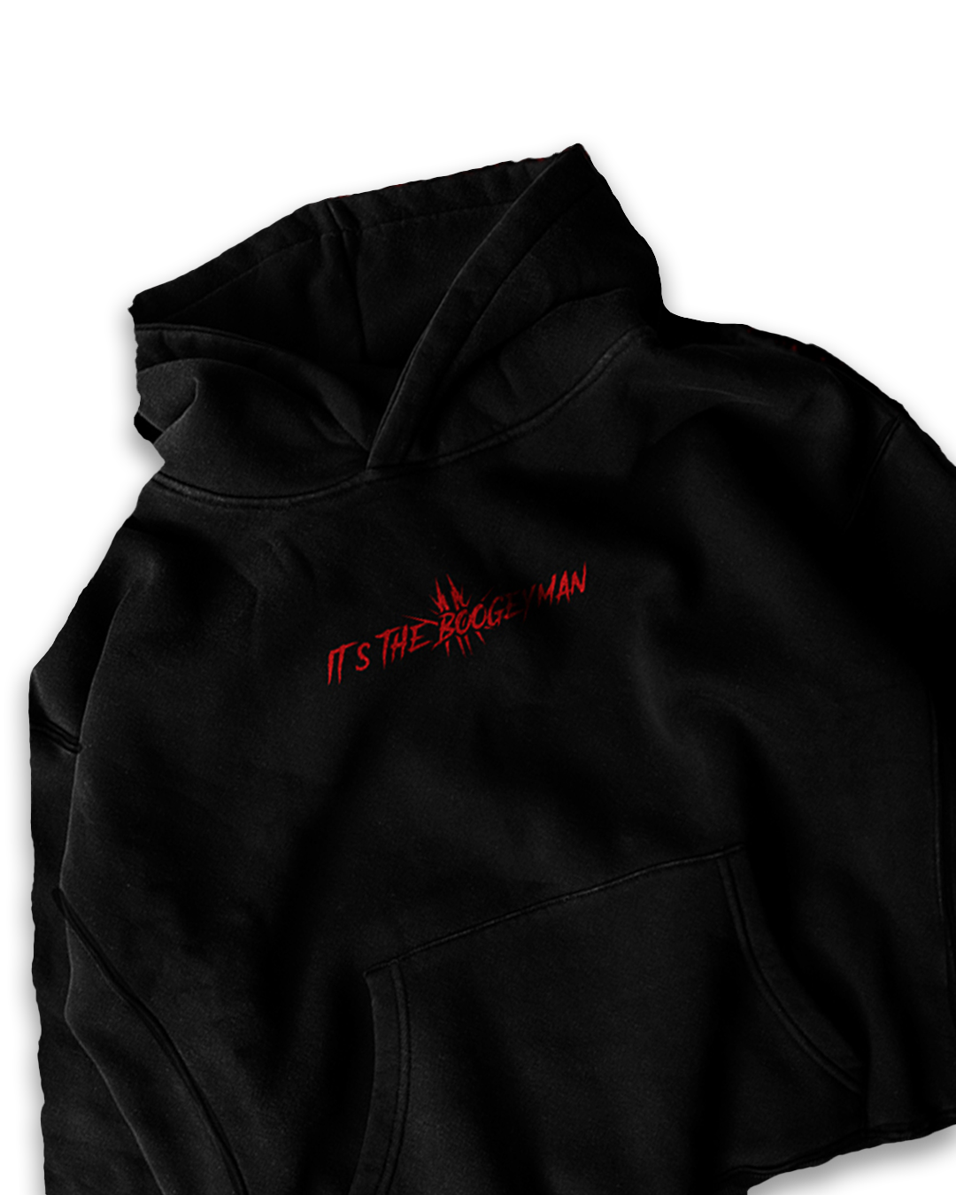 Embrace the darkness with the BOOGEYMAN HOODIE , inspired by the ultimate slasher, Michael Myers. Crafted from 350 GSM super-combed cotton fleece, this oversized hoodie envelops you in chilling comfort and haunting style. Perfect for stalking the night, this hoodie embodies the relentless terror of the Boogeyman himself. Wear it and let the nightmares begin.